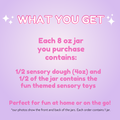 - NOTE: The main photo shows both the front and back of the jar, plus the lid. You'll receive one 8 oz jar, half filled with our dough (4 oz) and the other half with themed trinkets.