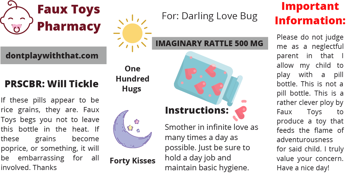 As a friendly reminder, we urge you not to allow any baby near actual pill bottles. Please lock them away no matter what.