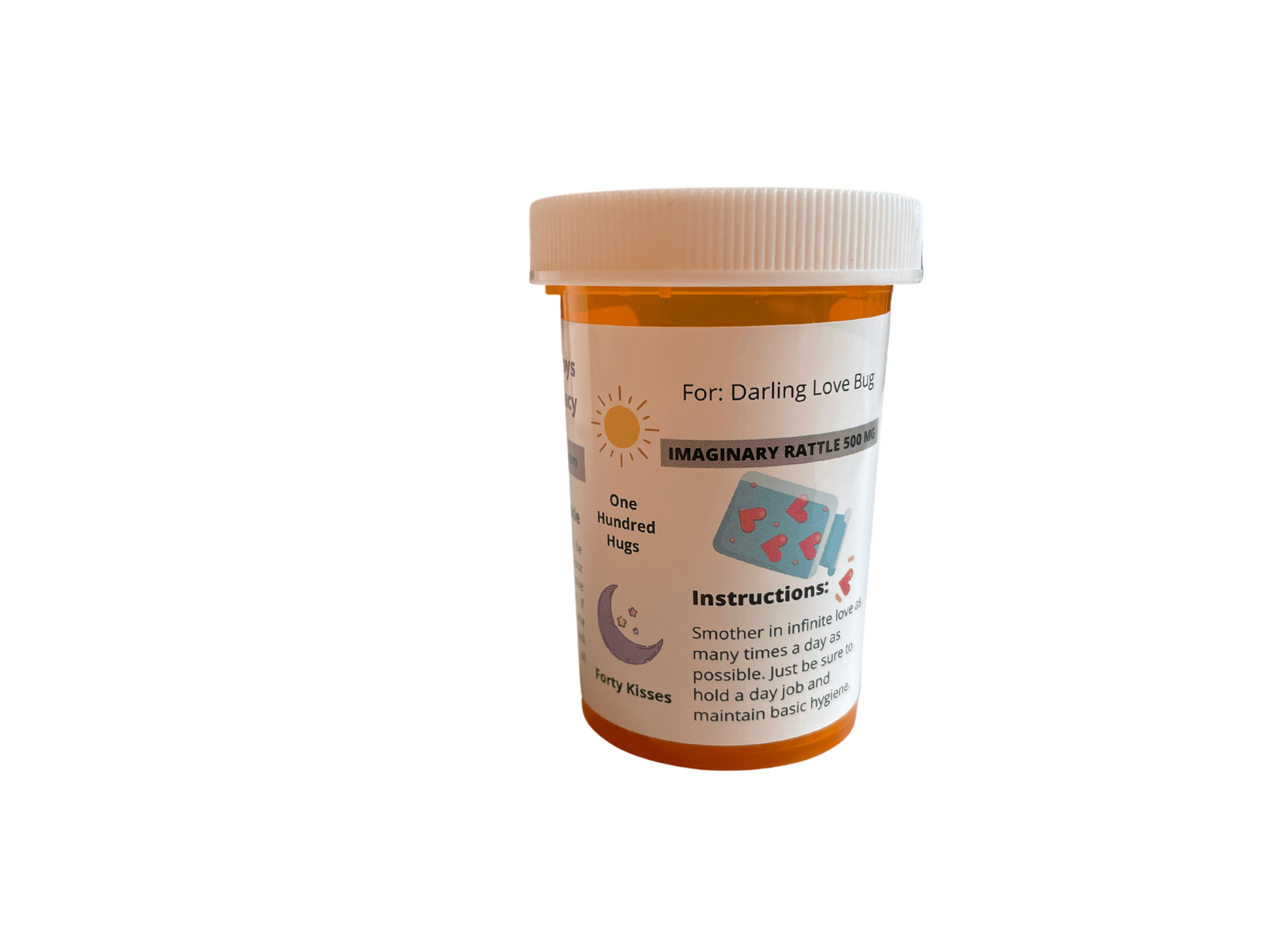 Does your baby love grasping a bottle of pills and using it as a rattle? Is that soothing sound too tempting for the little one? Satisfy this urge and create an inside joke among adults with the "Love is the Best Medicine" vial. This toy medicine bottle will offer hours of entertainment and a safe replacement for actual pill bottles. The prescription calls for lots of hugs and kisses and the rice filling makes a shaking sound that won't drive nearby grown-ups nuts.