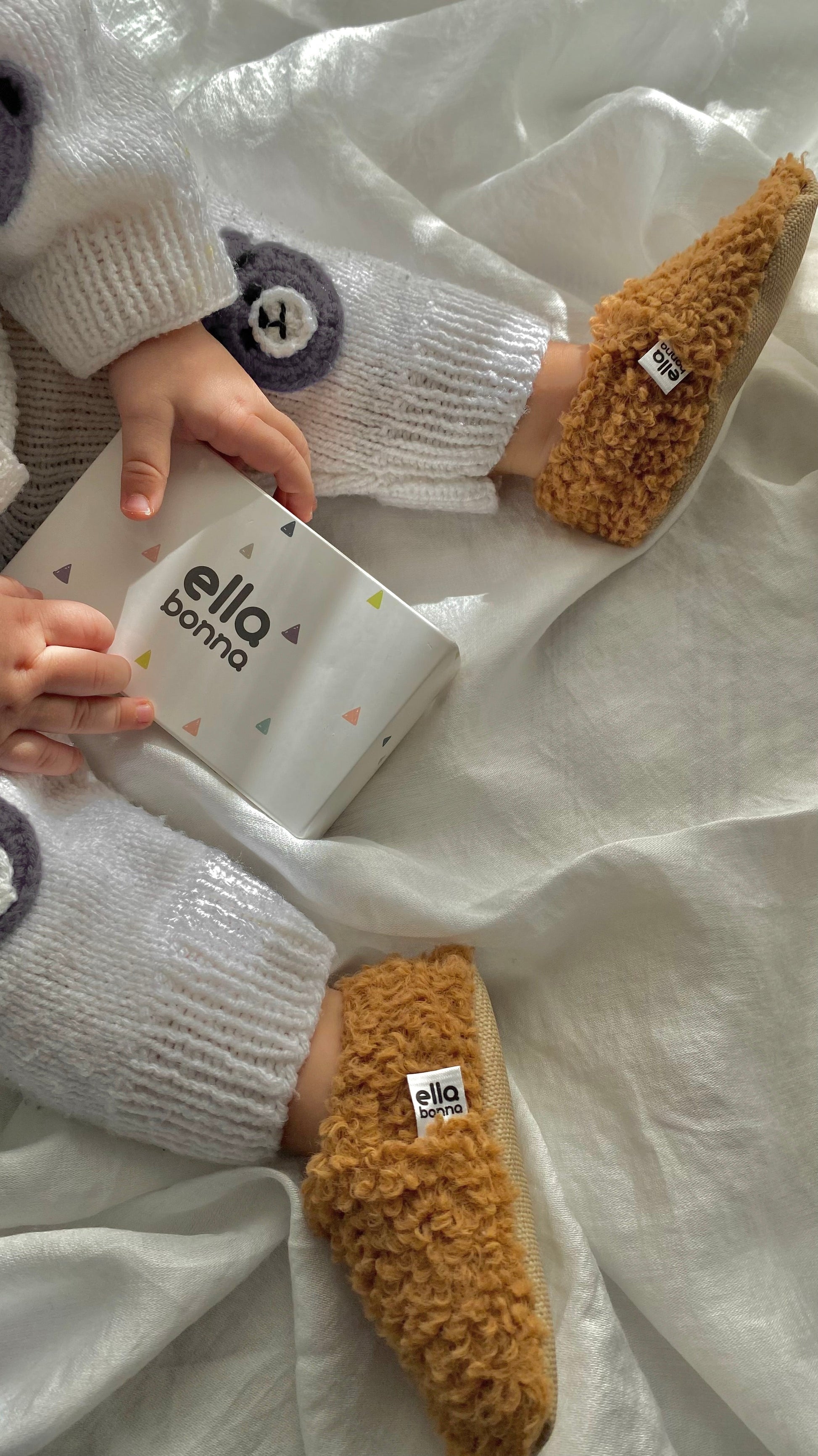 Teddy Baby Booties House Slippers, Non-Slip Sole, Organic Cotton Lining, Home Nursery Shoes Taba